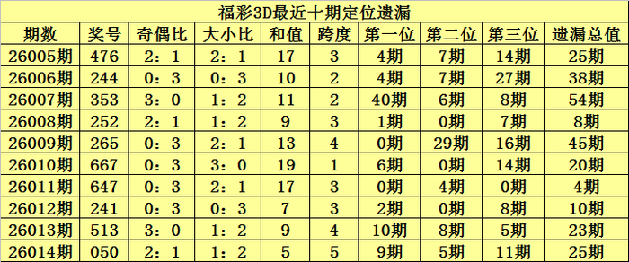 开奖总结:福彩3D第2026014期奖号:050,百位号码遗漏9期、十位号码遗漏5期、个位号码遗漏11期河北垚来丝网制品有限公司,遗漏总值为25期。